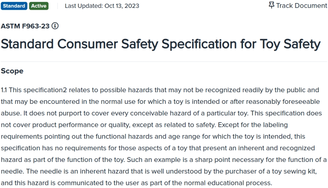 • ASTM F963-23美国玩具清静新标准宣布